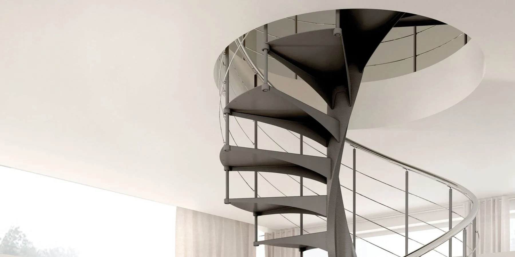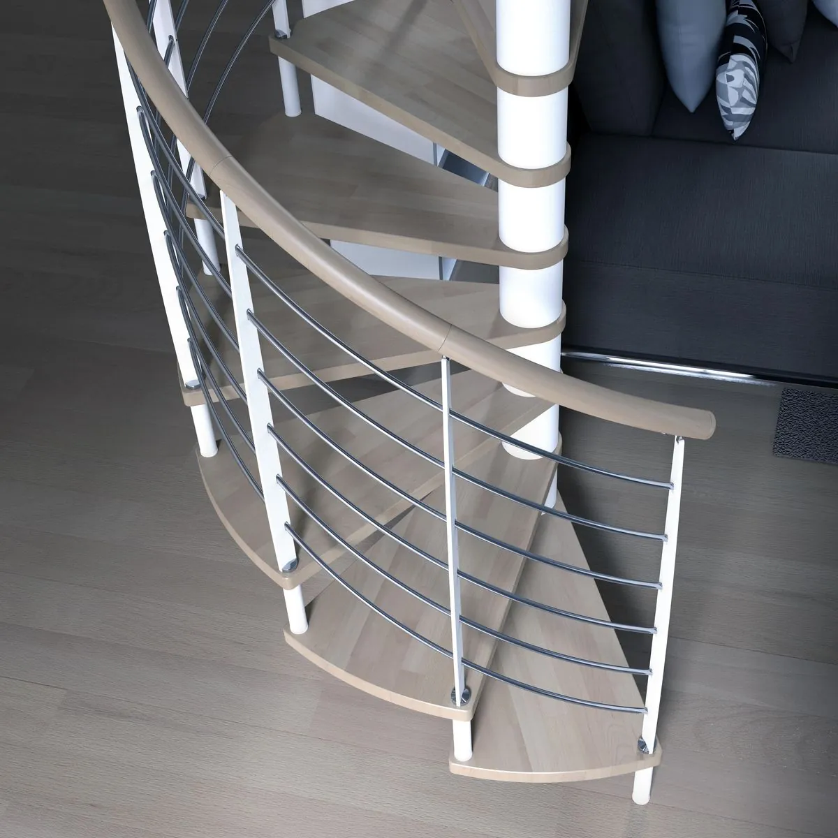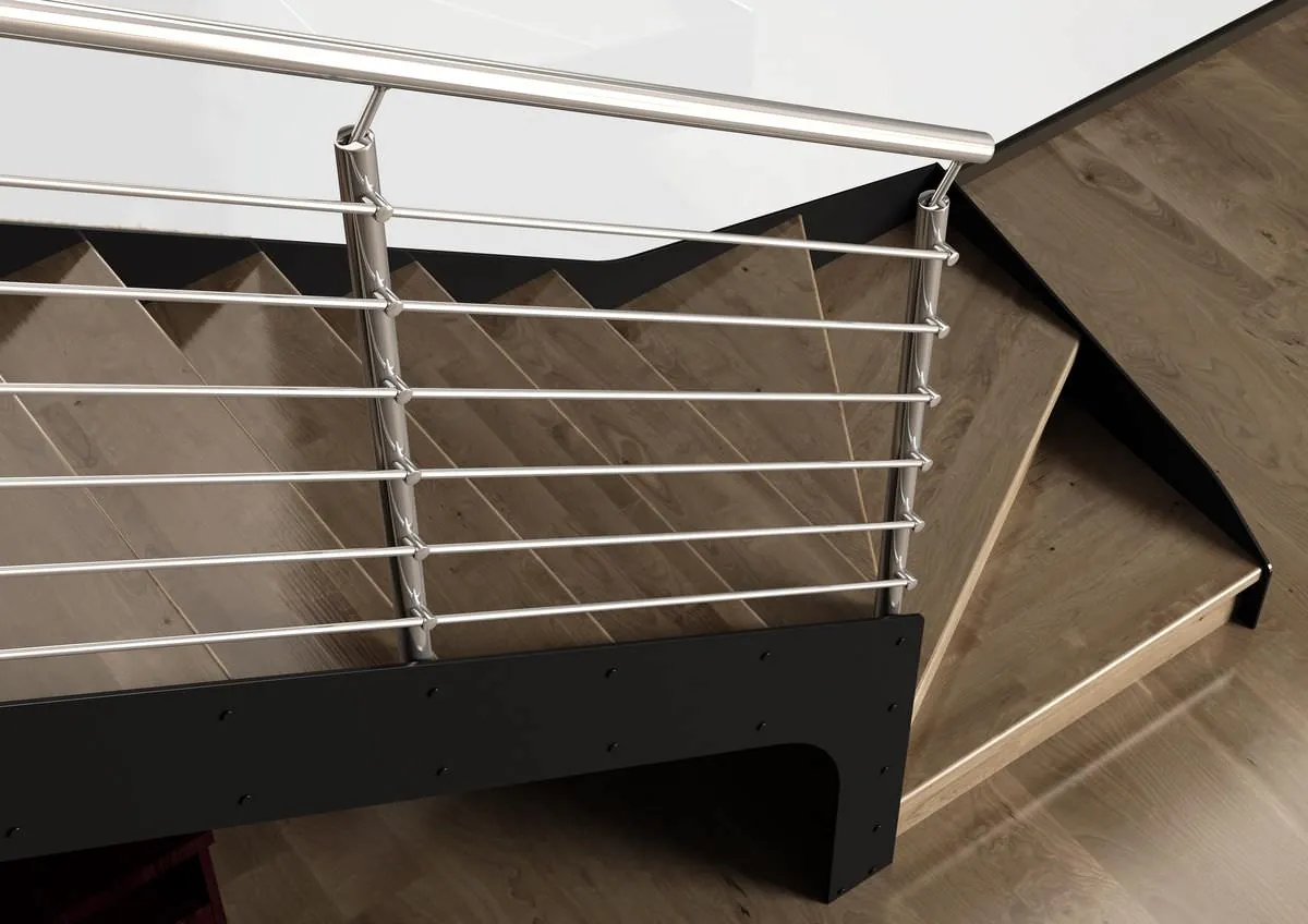 E' disponibile con ringhiera classica a colonnine verticali in metallo verniciato oppure ringhiera moderna con filoncini di acciaio, scopri la scala a chiocciola SMILE sul nostro e-Shop.