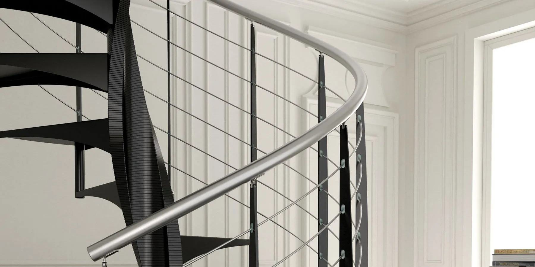 E' disponibile con ringhiera classica a colonnine verticali in metallo verniciato oppure ringhiera moderna con filoncini di acciaio, scopri la scala a chiocciola SMILE sul nostro e-Shop.